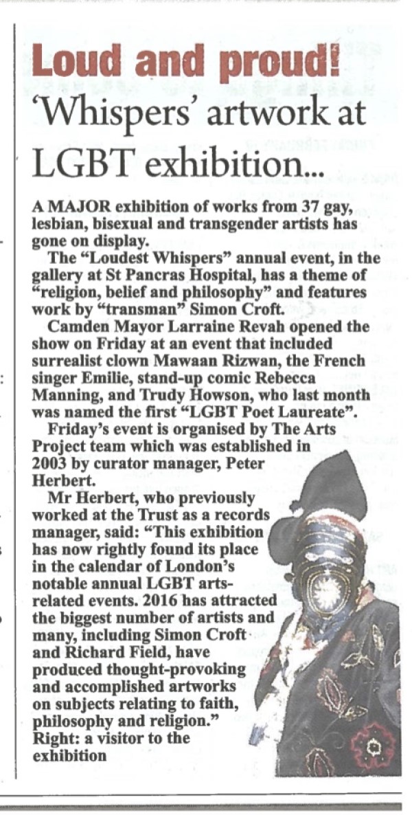 I received a shout-out in Camden New Journal, 11 February 2016, for my work that was showcased in the ‘London Whispers’ Exhibition.